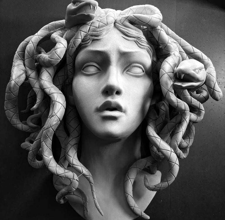 A mi manera, camaleónica, mística como una medusa, con capas, espinas, con serpientes, con enredos y carencias que doblegan los sentidos, afloran esta vulnerabilidad de sentirme al descubierto, solo, indefenso.