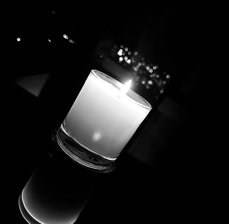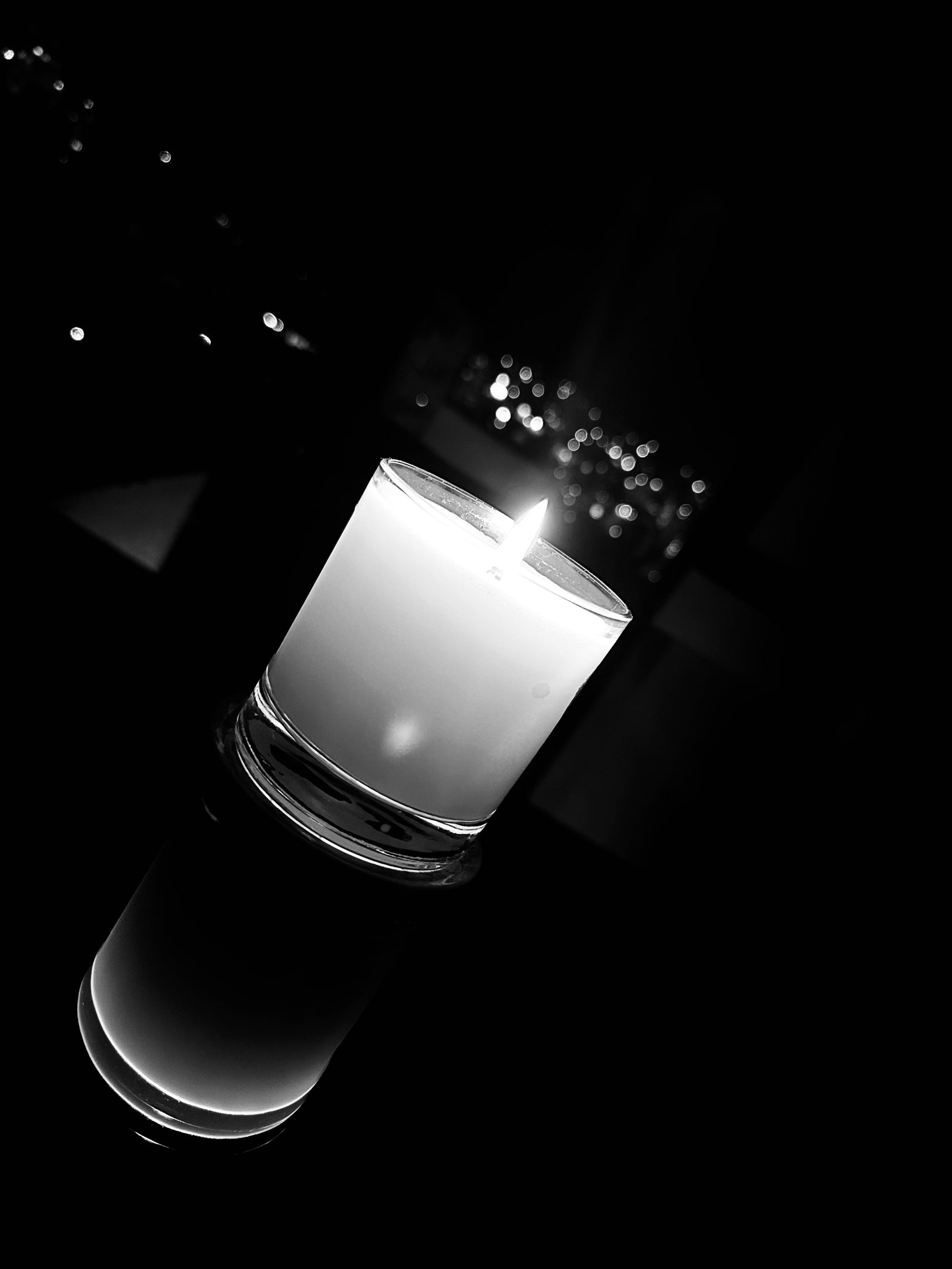 Me senté en el asiento de enfrente, la cabecera.... la mesa es literalmente nueva con un cristal limpio, la miraba con algo de incredulidad, como queriendo cuestionar un poco lo que empezaba a escuchar con atención, debo confesar que me perdía de tanto en tanto con los contrastes de vela contrapuesta a la noche oscura reflejada en el vidrio, tome varias fotos, pues visualizaba lo que sería tener ese recuerdo, el primero.... juntos, en blanco y negro claro que sí, pues al final se trataba de permanecer presentes sin dejar de sentir lo que estaba pasando, me refiero a mi manía de capturar al menos un momento del espacio compartido sin ser el protagonista principal, gracias a mi renuncia al ego.