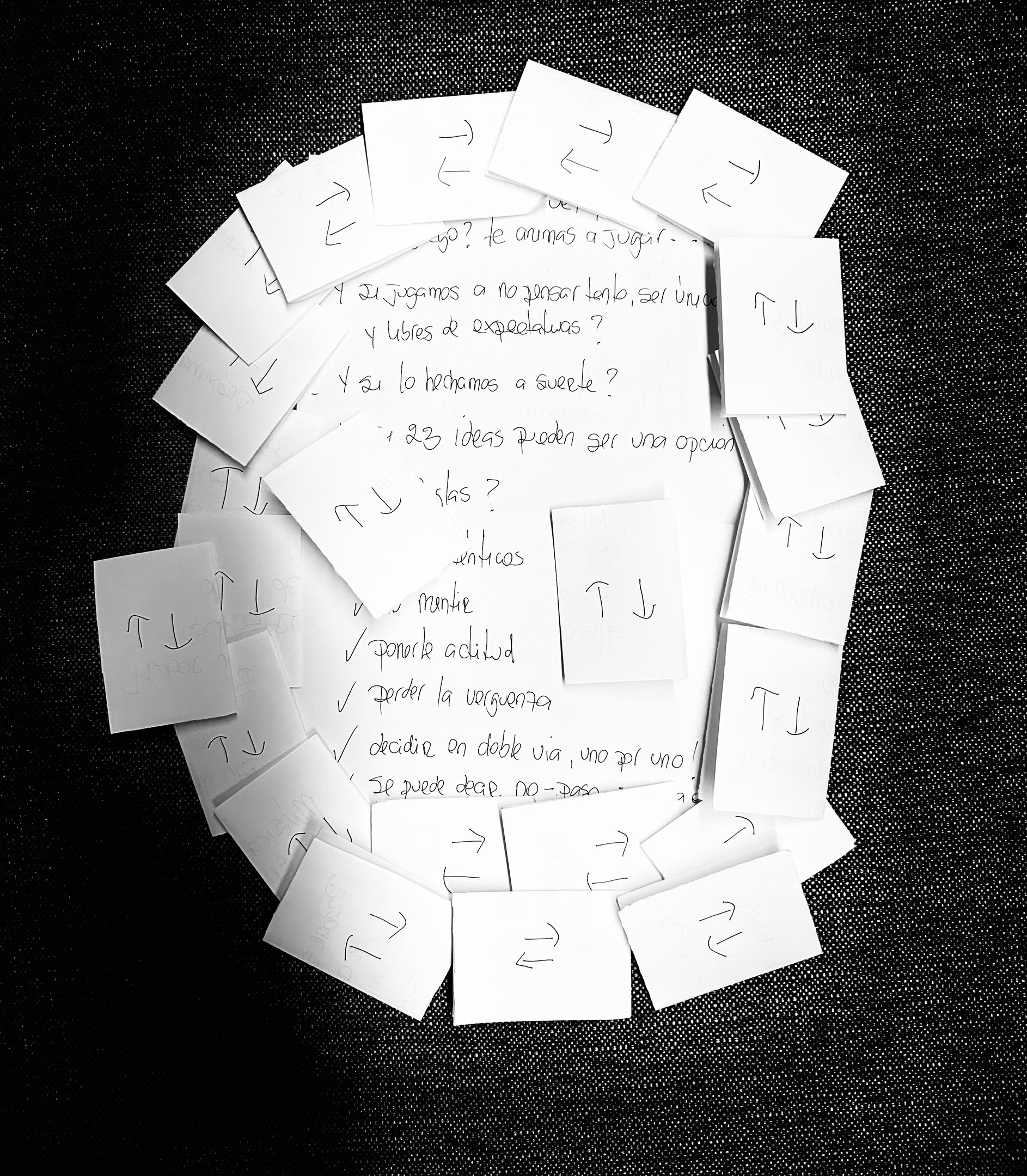 Y así en cuestión de una hora se me ocurrió plasmar las ideas en papel, un juego de doble vía, de ida y vuelta.........a ser libres joder!!!, a tomar decisiones instantáneas o cambiar de idea en consenso por el solo hecho de aceptar la individualidad y la zona de seguridad que cada quien profesa, que da sentido a su permanencia al compartir instantes que no tienen tiempo determinado de caducidad.